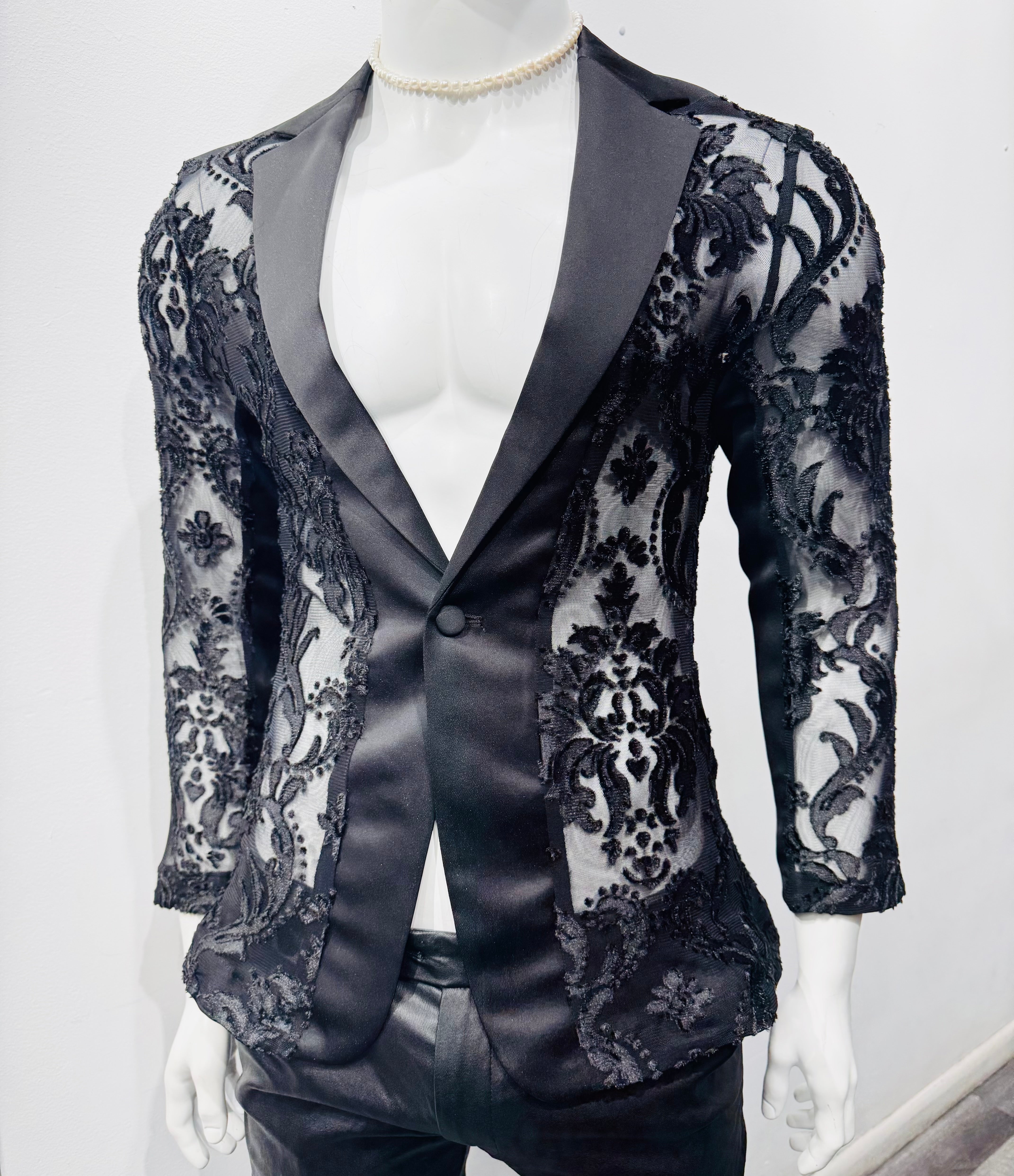 . A black lace blazer is the perfect fusion of elegance and edge—a bold reinterpretation of classic menswear. With its intricate Victorian patterns and sheer texture, it adds a layer of sophistication, mystery, and sensuality to any outfit. Whether worn for a red-carpet event, avant-garde performance, or a night out with flair, the black lace blazer commands attention without shouting.